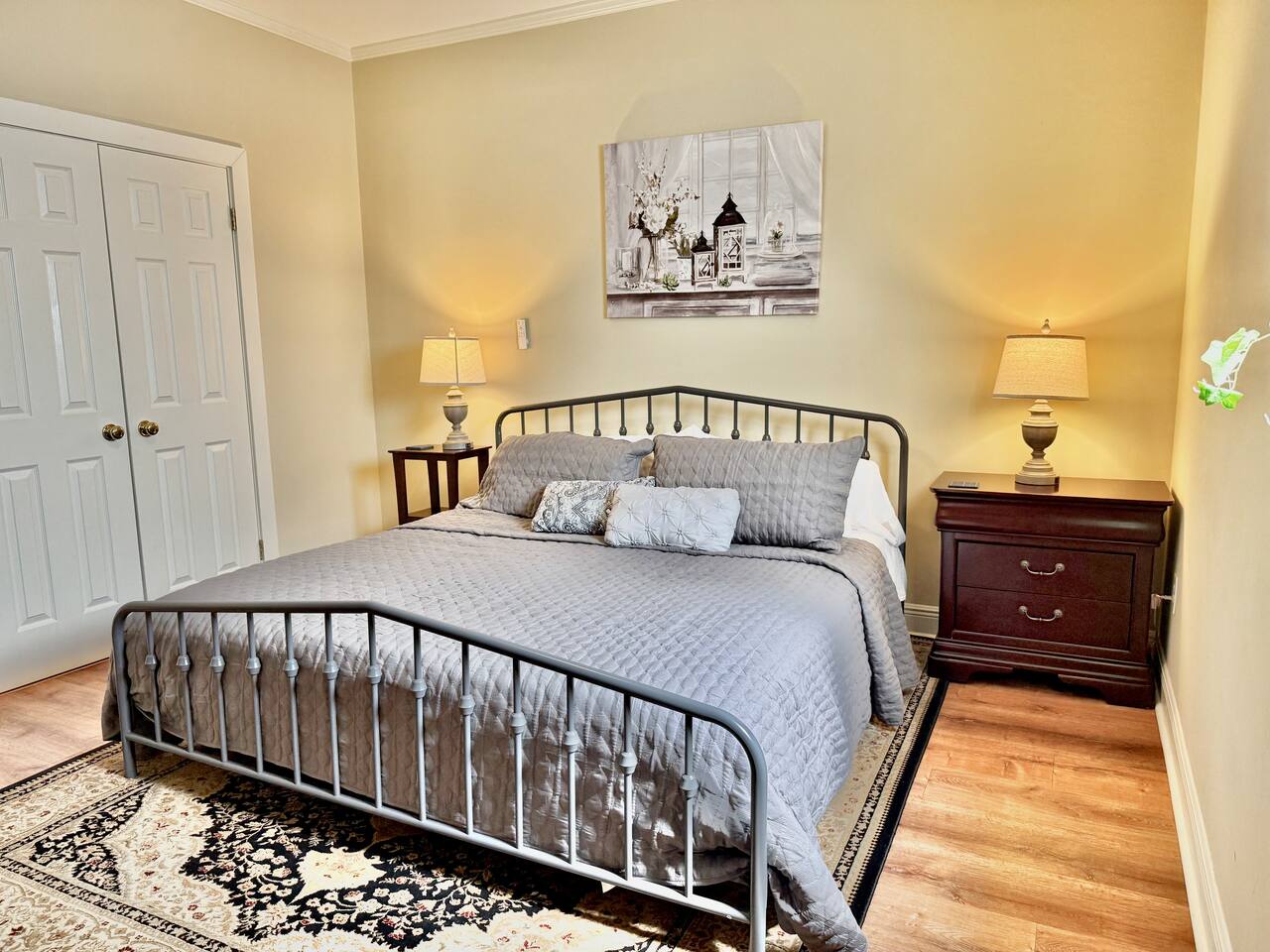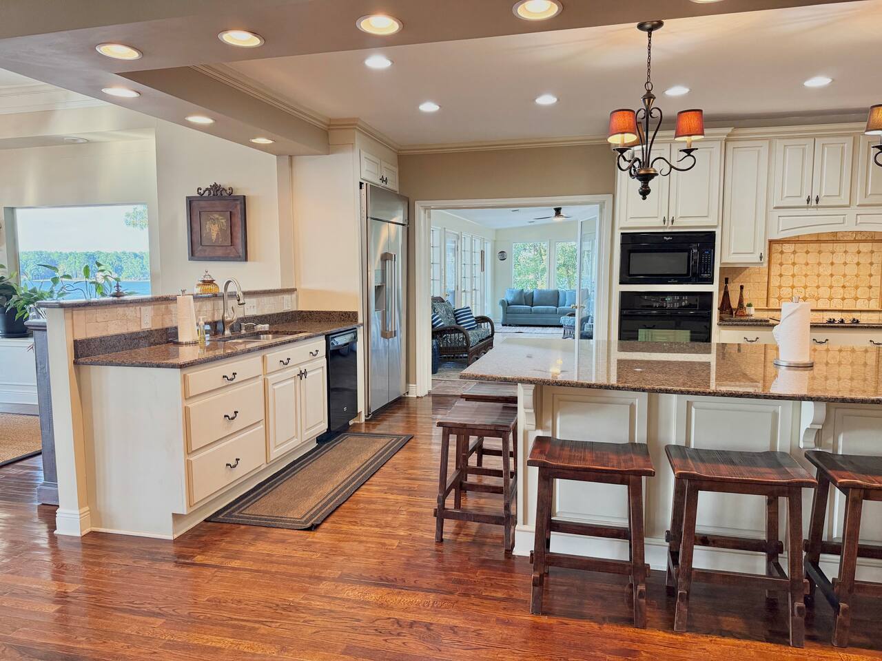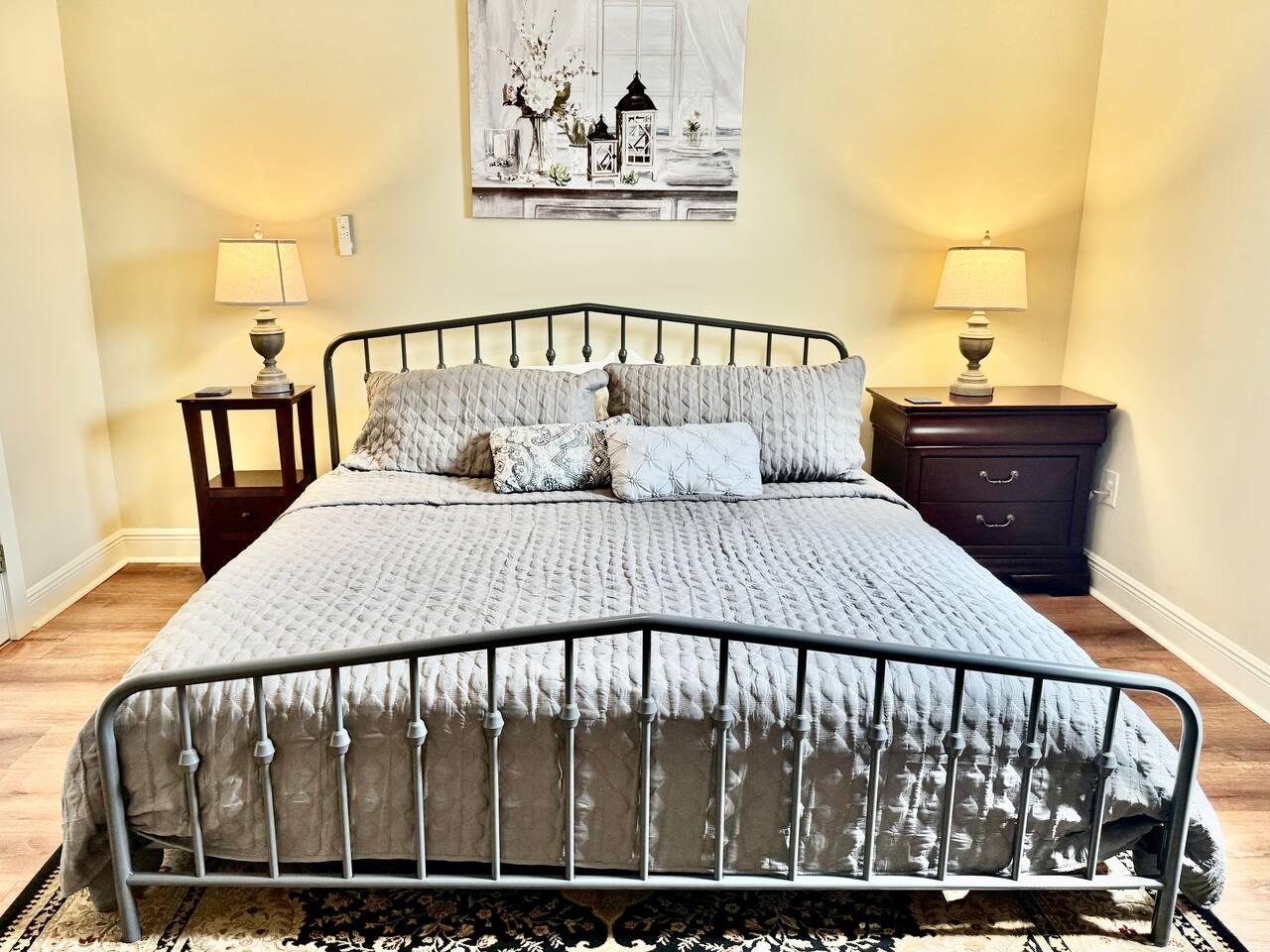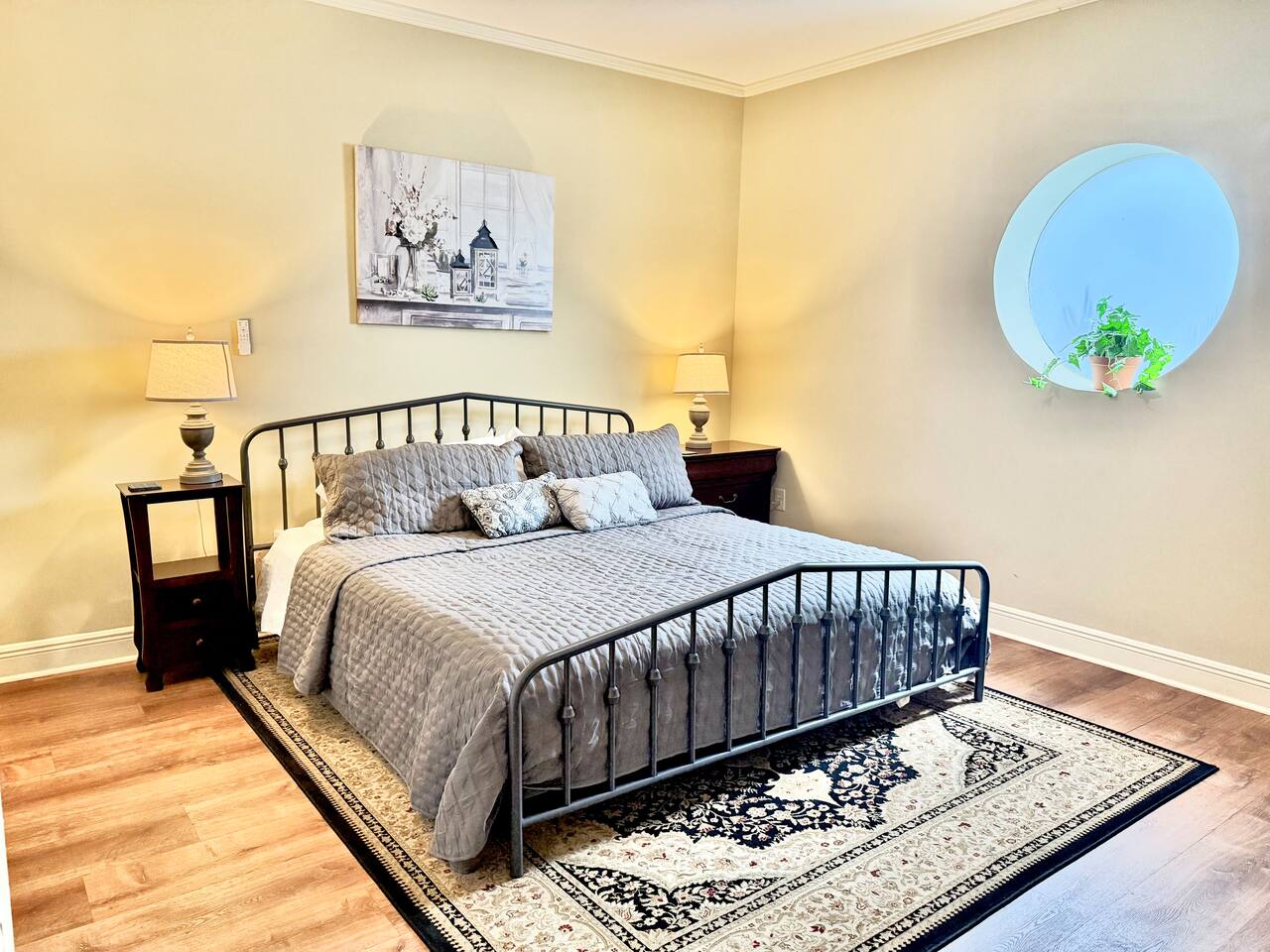 •House 2-story house with stairs 2-car attached garage 6 bedrooms 4 King 1 double 2 twin 1 twin day bed with twin pull-out trundle bed 3 pullout couches 3.5 bath Pool table Arcade game Projector •Exterior Body of water: Lake Jordan Double lot Deck, Porch, Gazebo Fir pit Waterfront features: Pier, Boat Slip, Seawall 2 Kayaks Fishing poles are available for fishing **Wheelchair ramp available upon request** •Interior Features Bidet Central HVAC High Ceilings 2 fireplaces Jetted Tub 2 Walk-in-showers Tub/shower combo Walk-In Closets Full kitchen Kitchen Island Finished Basement Built-in bar Door Features: Insulated Doors Flooring: Carpet, Tile, Wood Window Features: Double Pane Windows •Appliances Dishwasher Electric smooth Cooktop Electric Oven Disposal Microwave Refrigerator 3 mini fridge Dryer Washer Multiple Electric Water Heaters