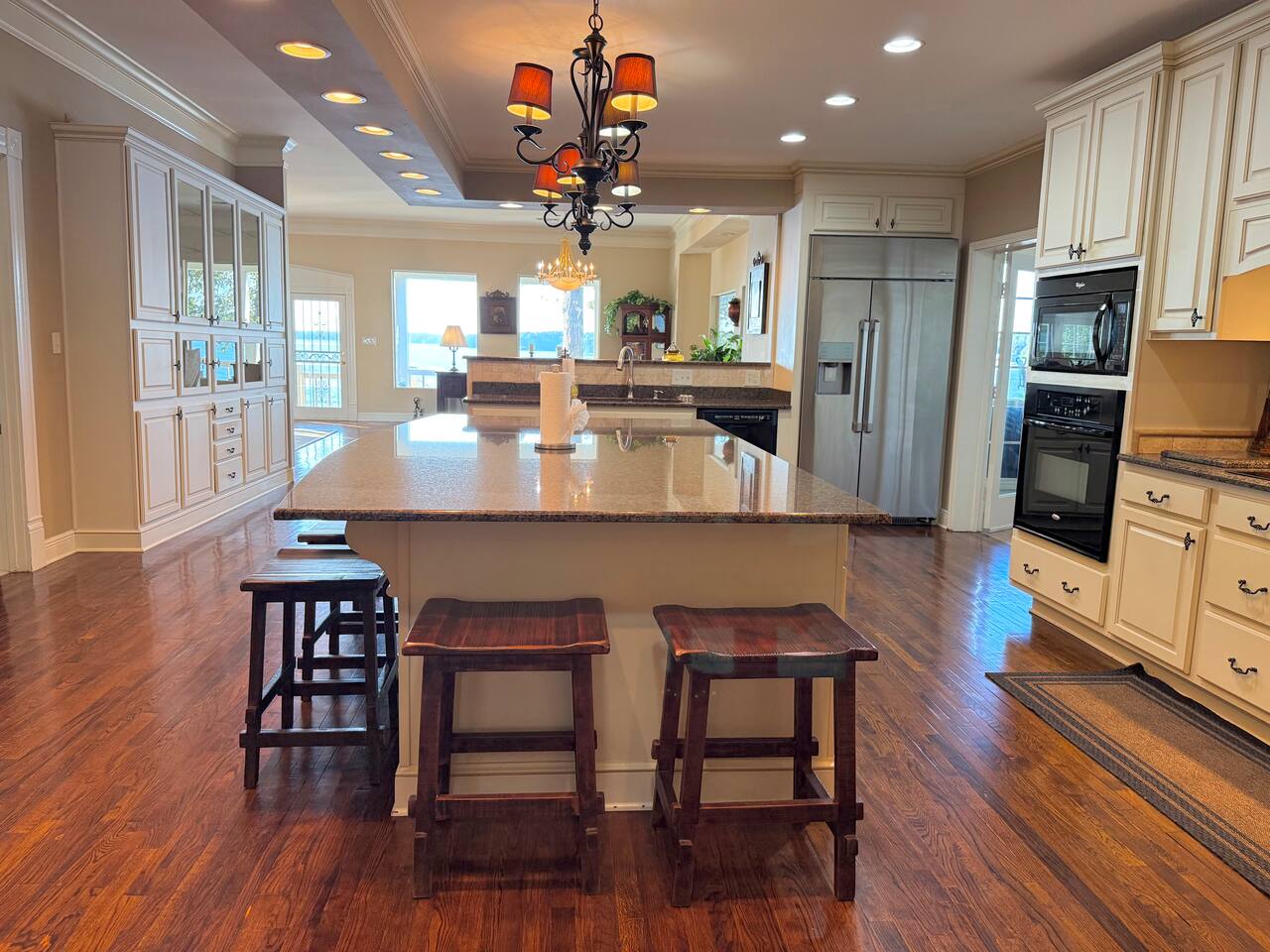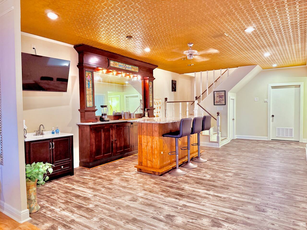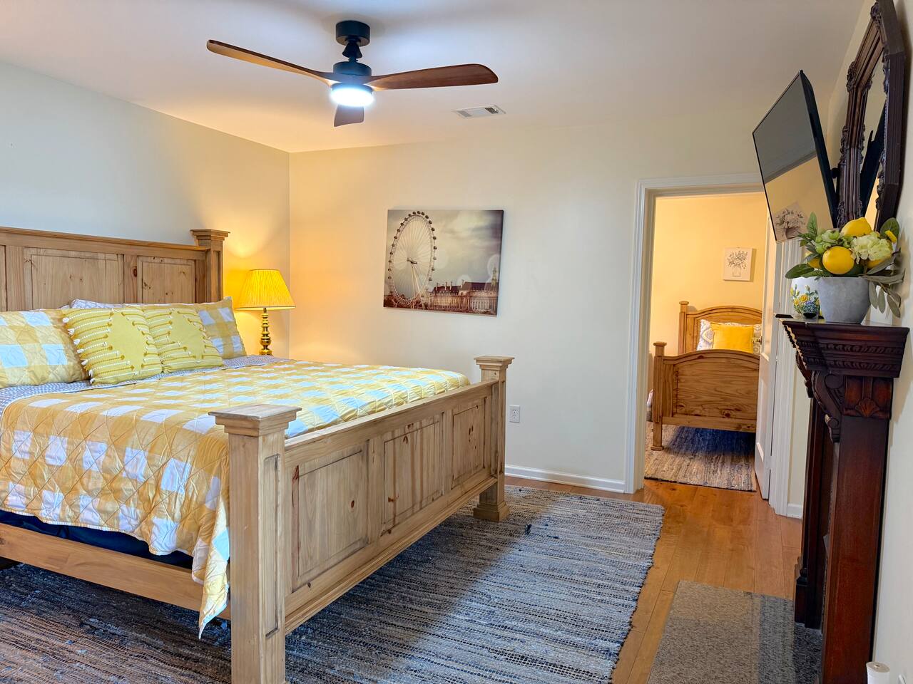 •House 2-story house with stairs 2-car attached garage 6 bedrooms 4 King 1 double 2 twin 1 twin day bed with twin pull-out trundle bed 3 pullout couches 3.5 bath Pool table Arcade game Projector •Exterior Body of water: Lake Jordan Double lot Deck, Porch, Gazebo Fir pit Waterfront features: Pier, Boat Slip, Seawall 2 Kayaks Fishing poles are available for fishing **Wheelchair ramp available upon request** •Interior Features Bidet Central HVAC High Ceilings 2 fireplaces Jetted Tub 2 Walk-in-showers Tub/shower combo Walk-In Closets Full kitchen Kitchen Island Finished Basement Built-in bar Door Features: Insulated Doors Flooring: Carpet, Tile, Wood Window Features: Double Pane Windows •Appliances Dishwasher Electric smooth Cooktop Electric Oven Disposal Microwave Refrigerator 3 mini fridge Dryer Washer Multiple Electric Water Heaters