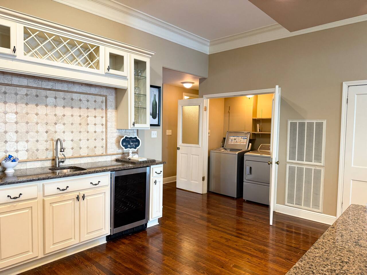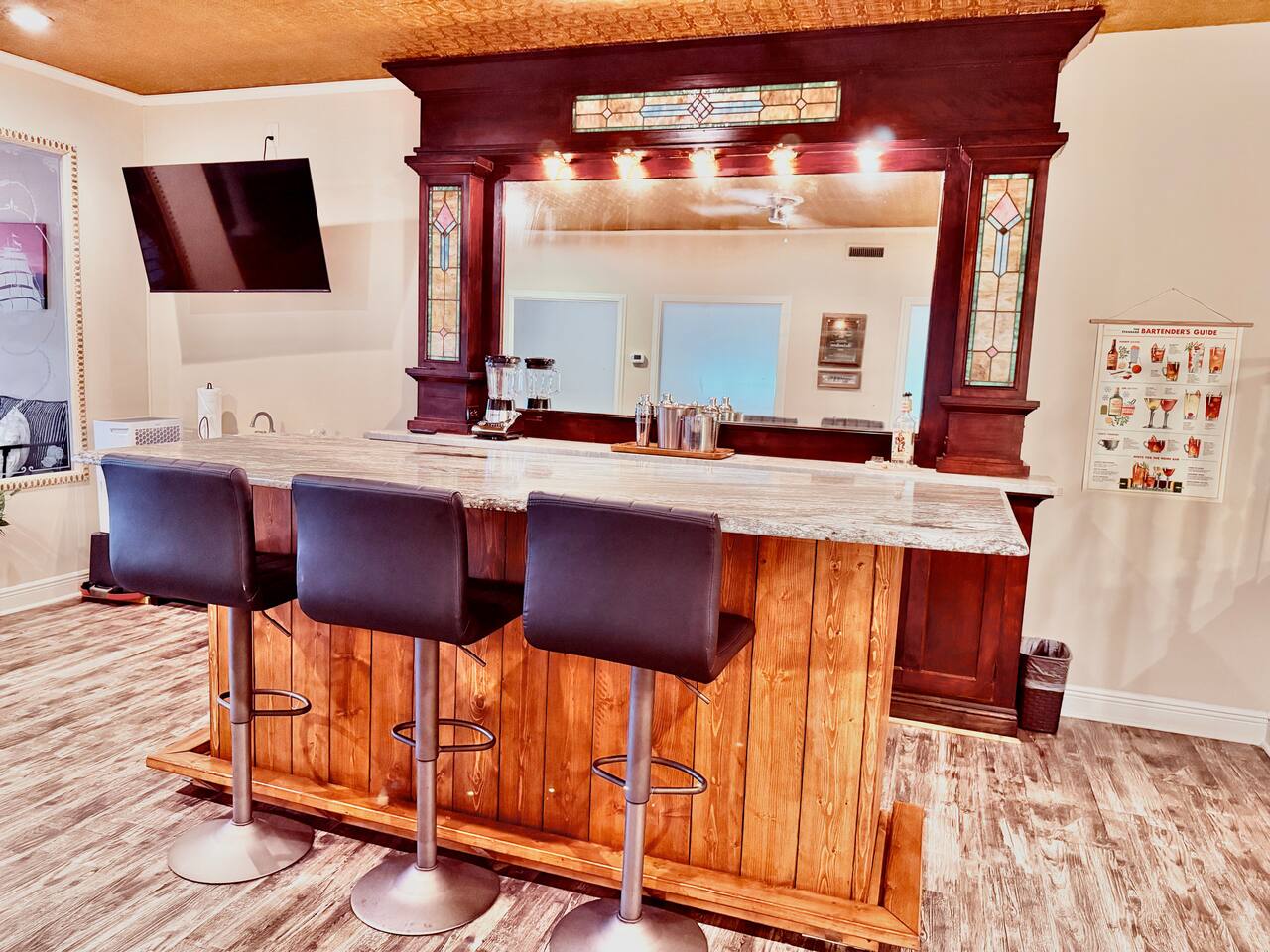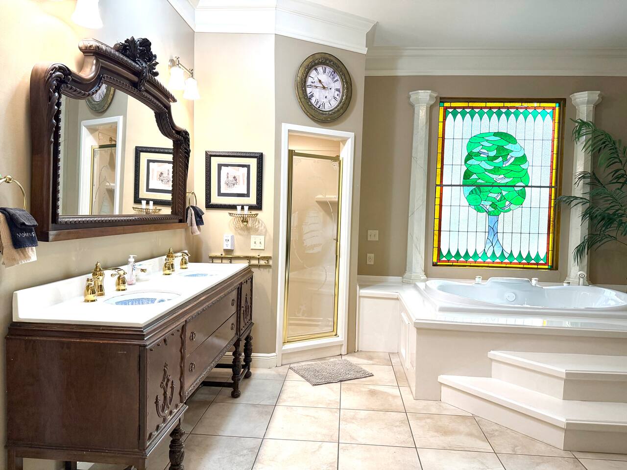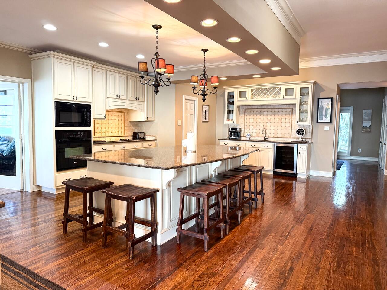 •House 2-story house with stairs 2-car attached garage 6 bedrooms 4 King 1 double 2 twin 1 twin day bed with twin pull-out trundle bed 3 pullout couches 3.5 bath Pool table Arcade game Projector •Exterior Body of water: Lake Jordan Double lot Deck, Porch, Gazebo Fir pit Waterfront features: Pier, Boat Slip, Seawall 2 Kayaks Fishing poles are available for fishing **Wheelchair ramp available upon request** •Interior Features Bidet Central HVAC High Ceilings 2 fireplaces Jetted Tub 2 Walk-in-showers Tub/shower combo Walk-In Closets Full kitchen Kitchen Island Finished Basement Built-in bar Door Features: Insulated Doors Flooring: Carpet, Tile, Wood Window Features: Double Pane Windows •Appliances Dishwasher Electric smooth Cooktop Electric Oven Disposal Microwave Refrigerator 3 mini fridge Dryer Washer Multiple Electric Water Heaters
