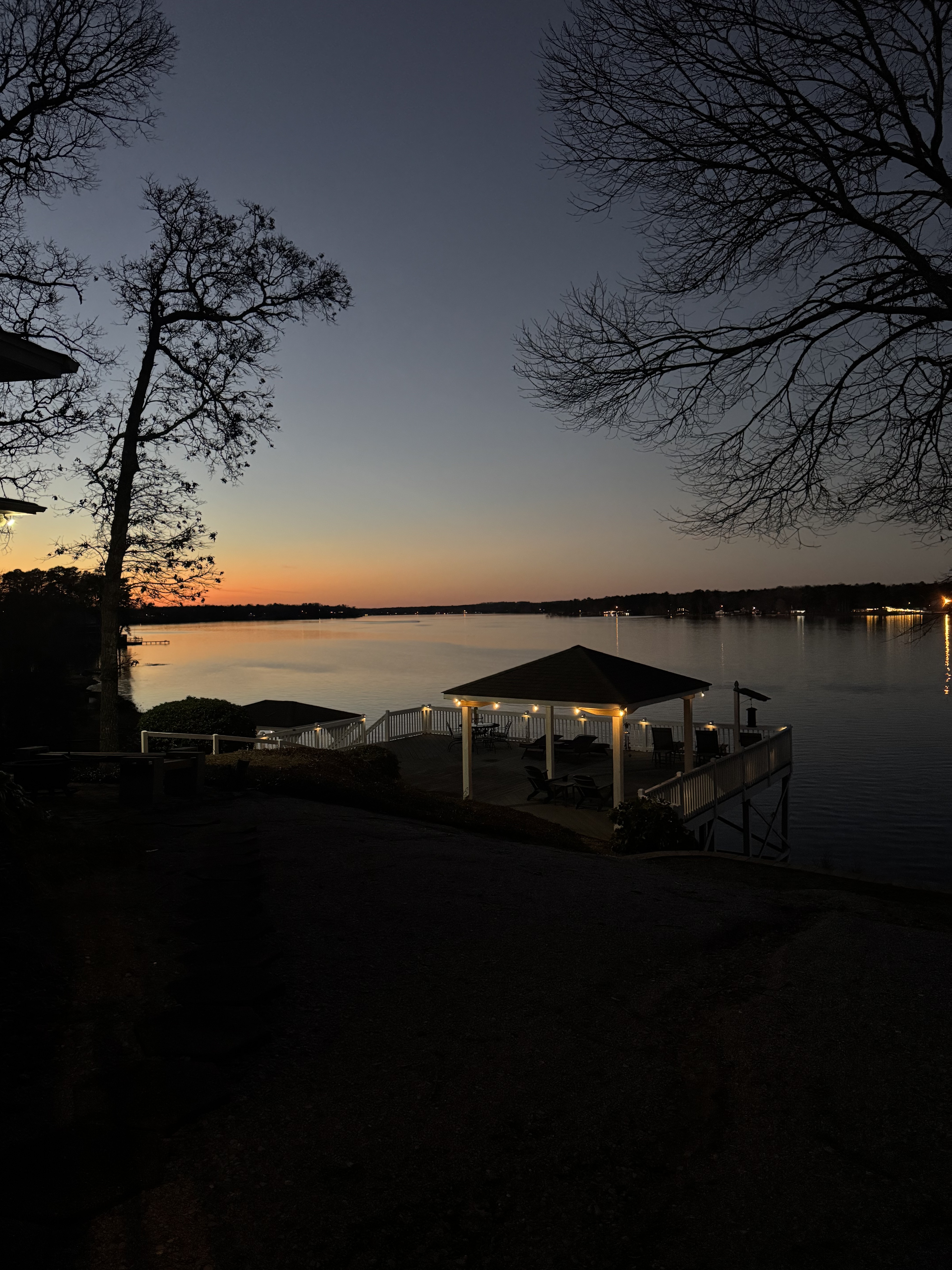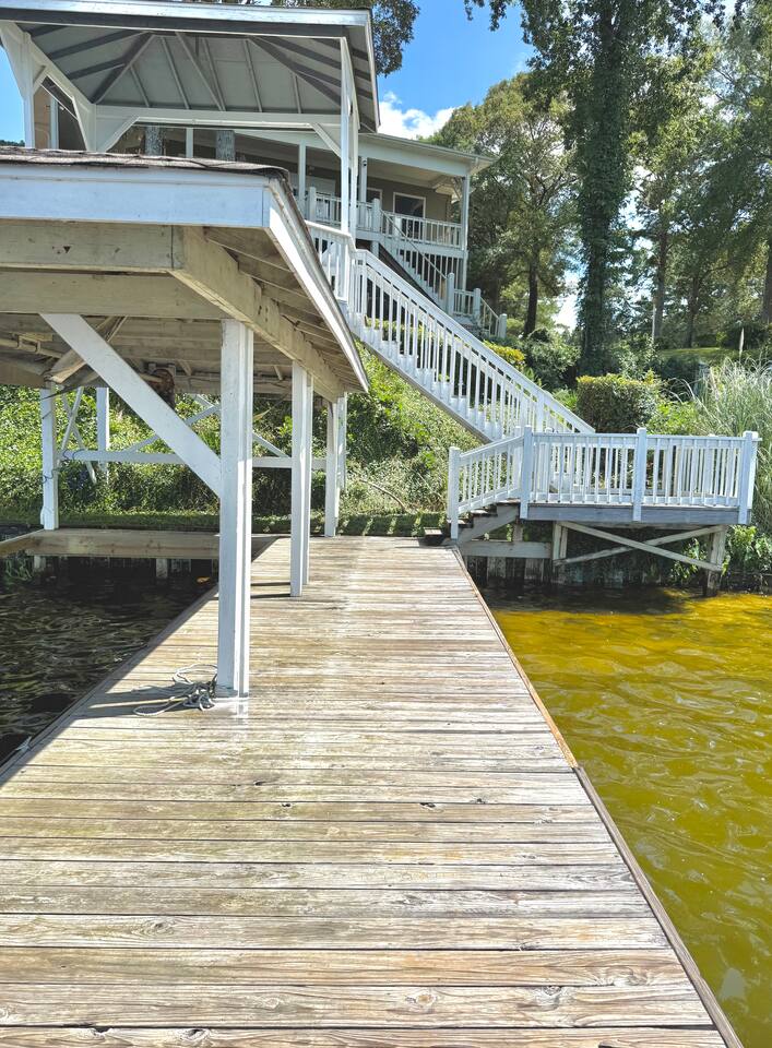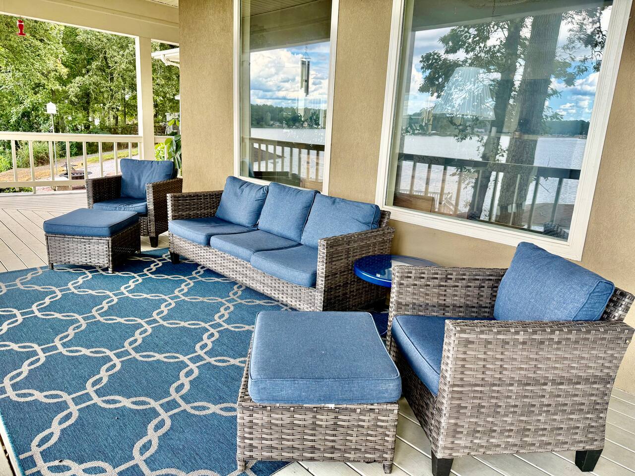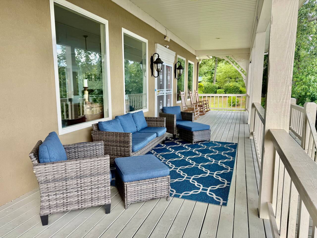 All Decked Out is a spacious, family-friendly 2-story home, featuring 6,000 square feet of living space on a double lot, comfortably accommodating up to 18 guests. Enjoy breathtaking views of Lake Jordan through large windows. Sip your morning coffee on the wrap-around porch, and take advantage of the private dock for kayaking and fishing. Gather around the fire pit for s'mores under the stars. Golf and city amenities are just a short drive away, making this a perfect escape from everyday life.