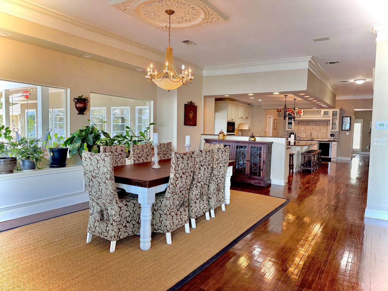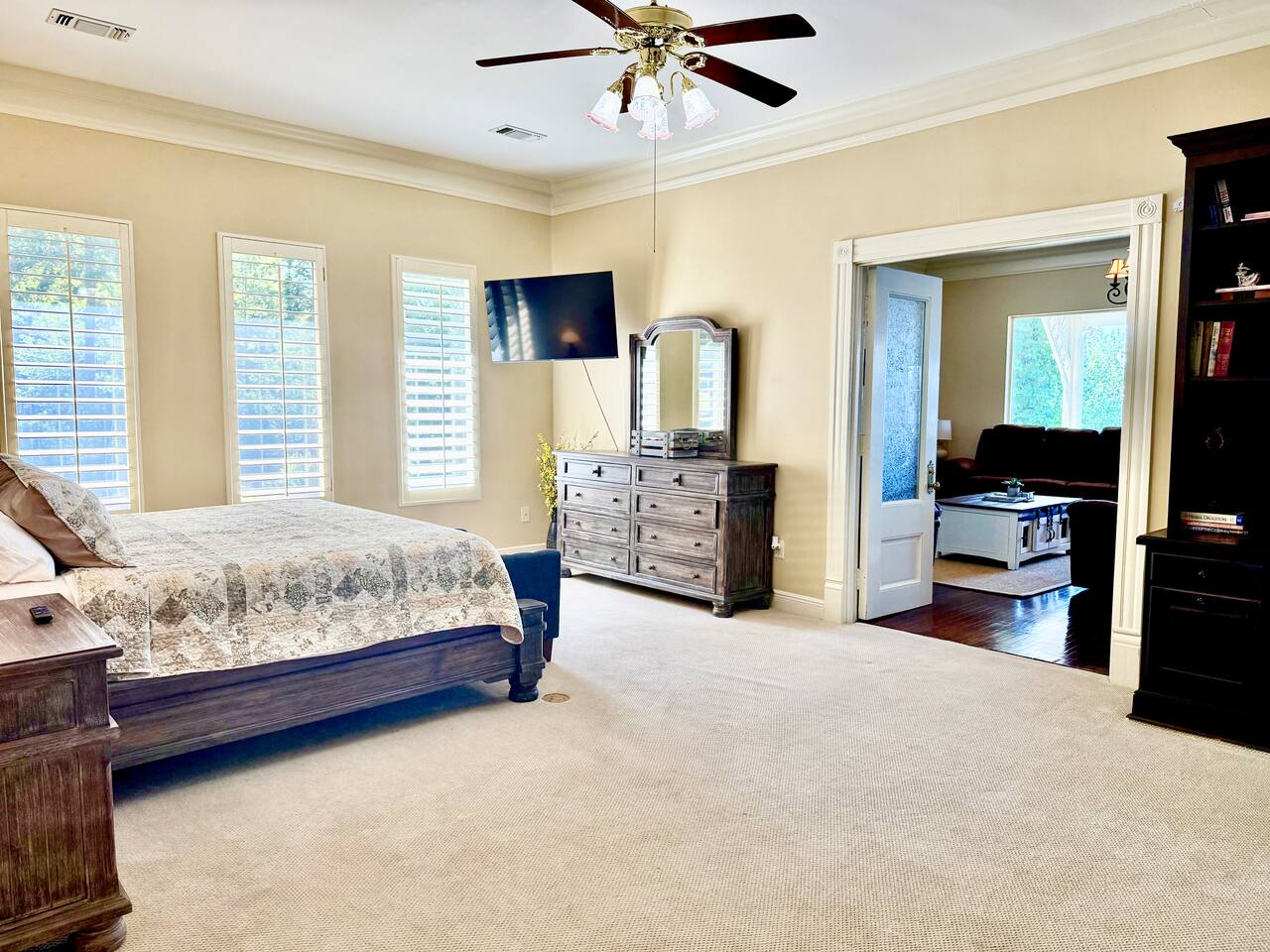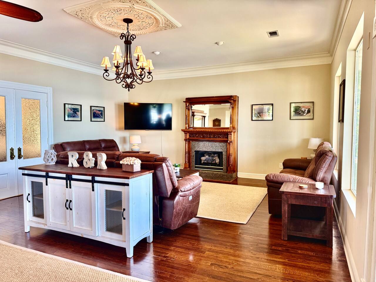 All Decked Out is a spacious, family-friendly 2-story home, featuring 6,000 square feet of living space on a double lot, comfortably accommodating up to 18 guests. Enjoy breathtaking views of Lake Jordan through large windows. Sip your morning coffee on the wrap-around porch, and take advantage of the private dock for kayaking and fishing. Gather around the fire pit for s'mores under the stars. Golf and city amenities are just a short drive away, making this a perfect escape from everyday life.